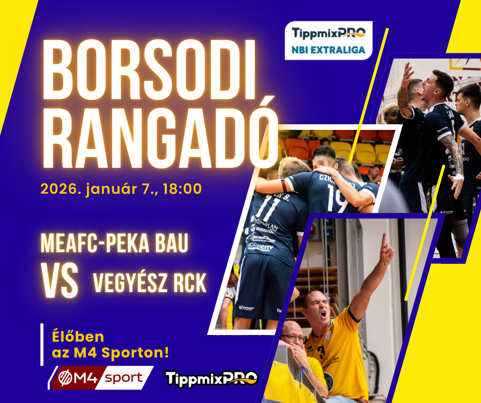 Szerdán 18 órától az M4 Sport élőben közvetíti a Miskolci Egyetem Körcsarnokából a házigazda MEAFC-Peka Bau és a Vegyész RC Kazincbarcika TippmixPro NBI Extraliga alapszakasz-mérkőzését.